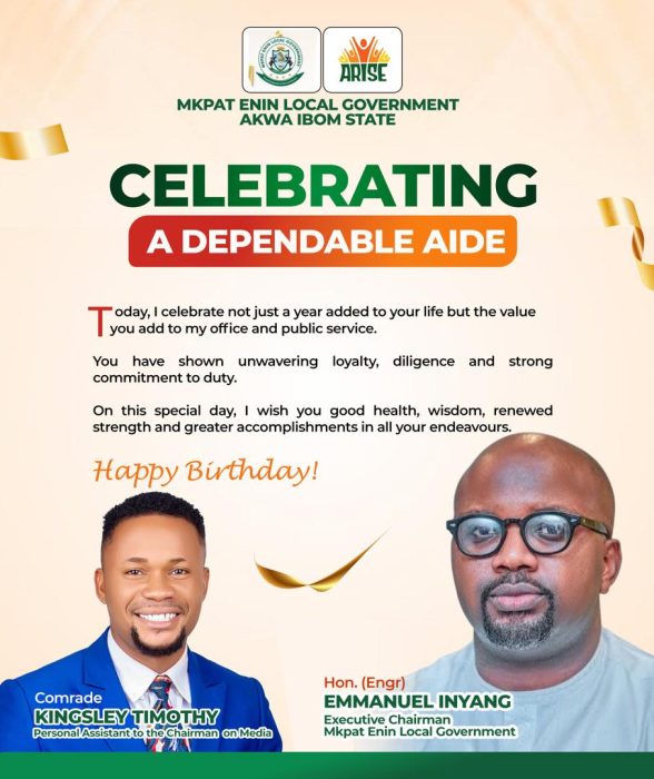 Your emergence as the Executive Chairman of Mkpat Enin Local Government Area was no accident; it was a divine orchestration.